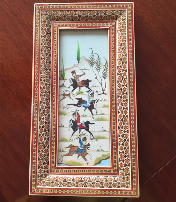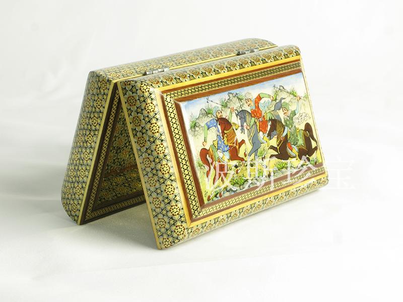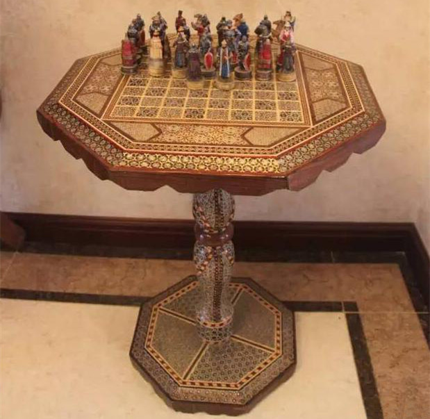 Khatam is an ancient technique of inlaying. It is a version of marquetry where art forms are made by decorating the surface of wooden articles with delicate pieces of wood, bone and metal precisely-cut intricate geometric patterns. Khatam-kari or khatam-bandi refers to the art of crafting a khatam. Common materials used in the construction of inlaid articles are gold, silver, brass, aluminum and twisted wire.