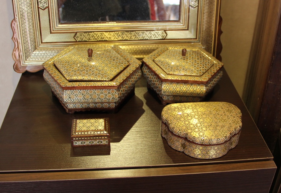These works include doors and windows, mirror frames, Quran boxes, inlaid boxes, pen and penholders, lanterns and shrines.